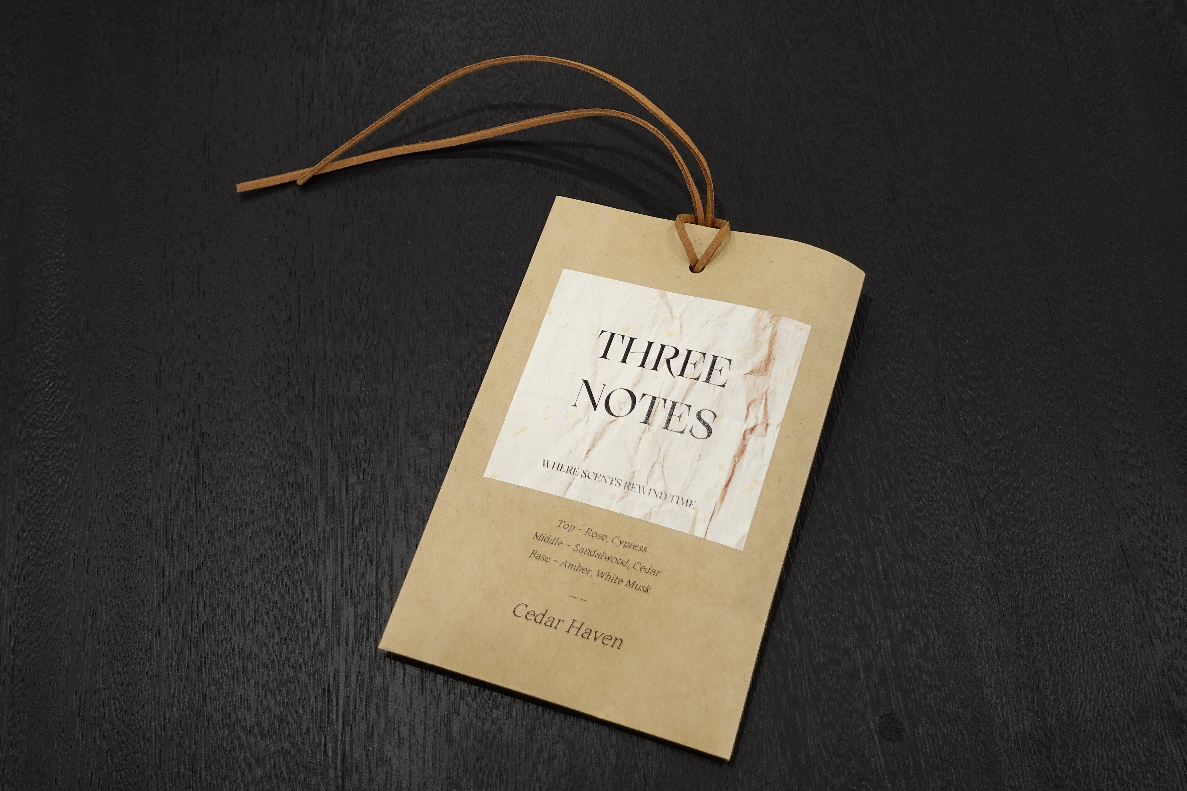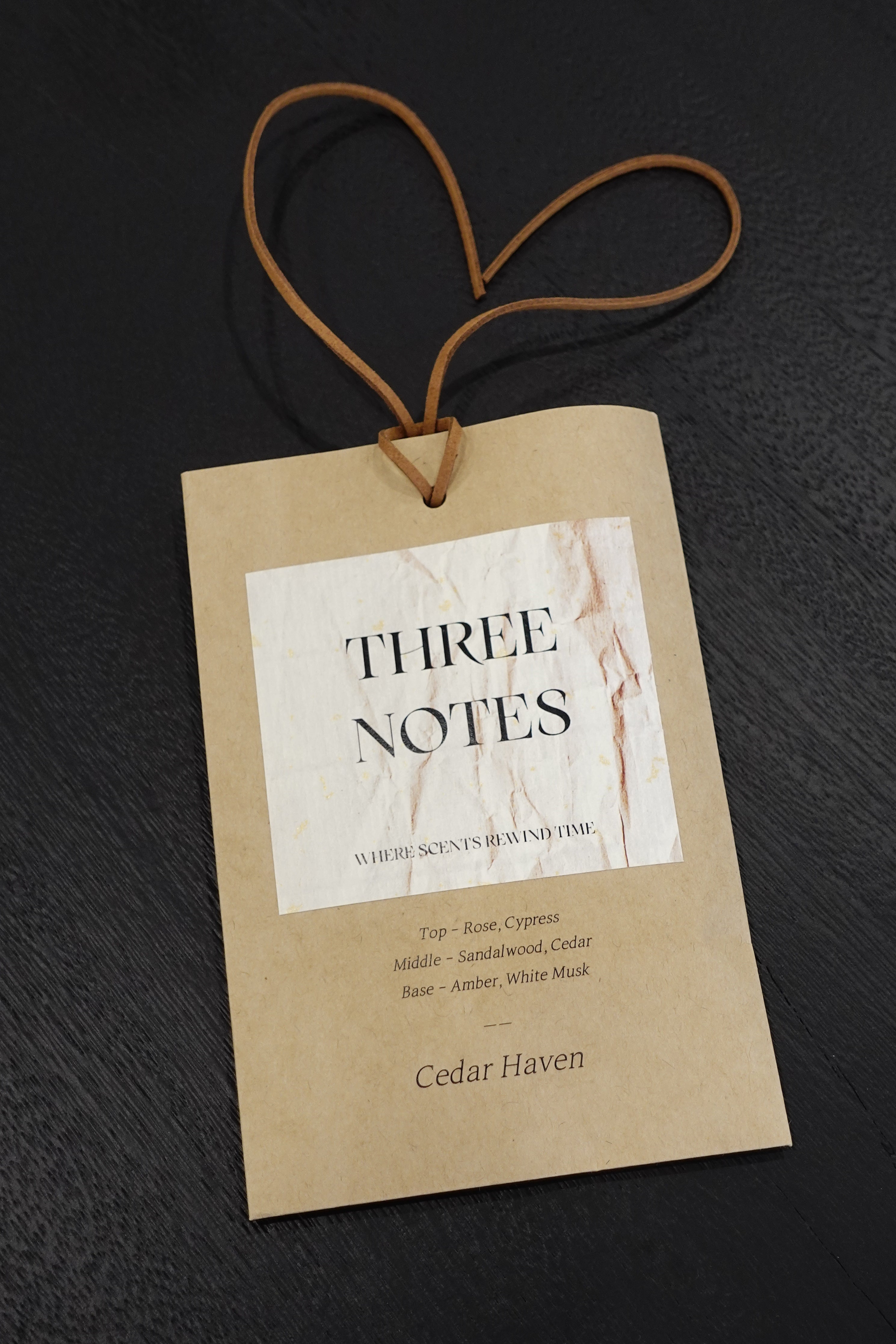 The rich depth of cedar and the warmth of sandalwood create an atmosphere of safety and calm, like a natural sanctuary. Cypress and rose weave subtle vitality into the heaviness of wood, softening its strength. Finally, amber and white musk rise to the surface, infusing the fragrance with warmth and longevity — like the comfort of quiet moments by the fireplace.